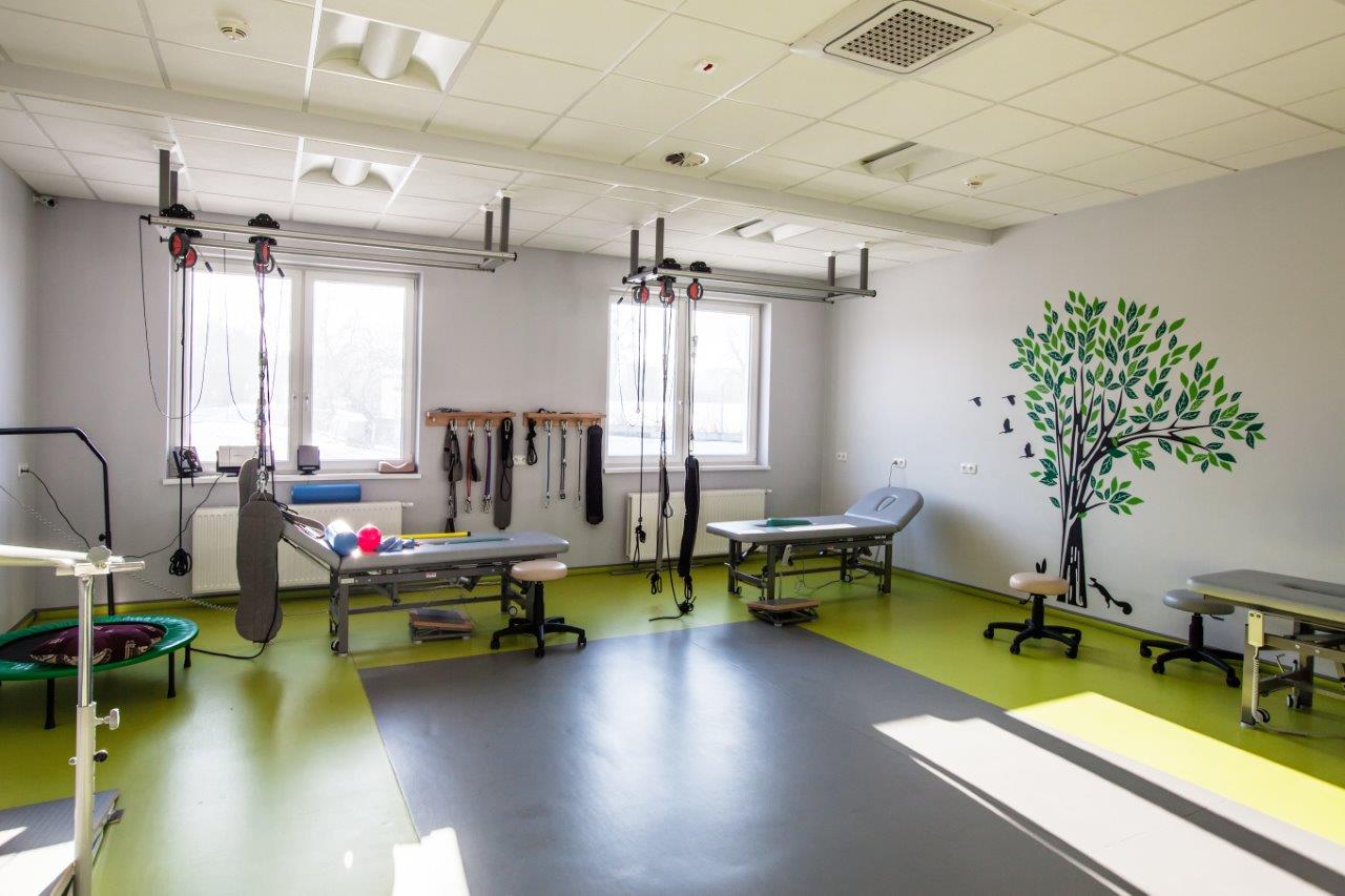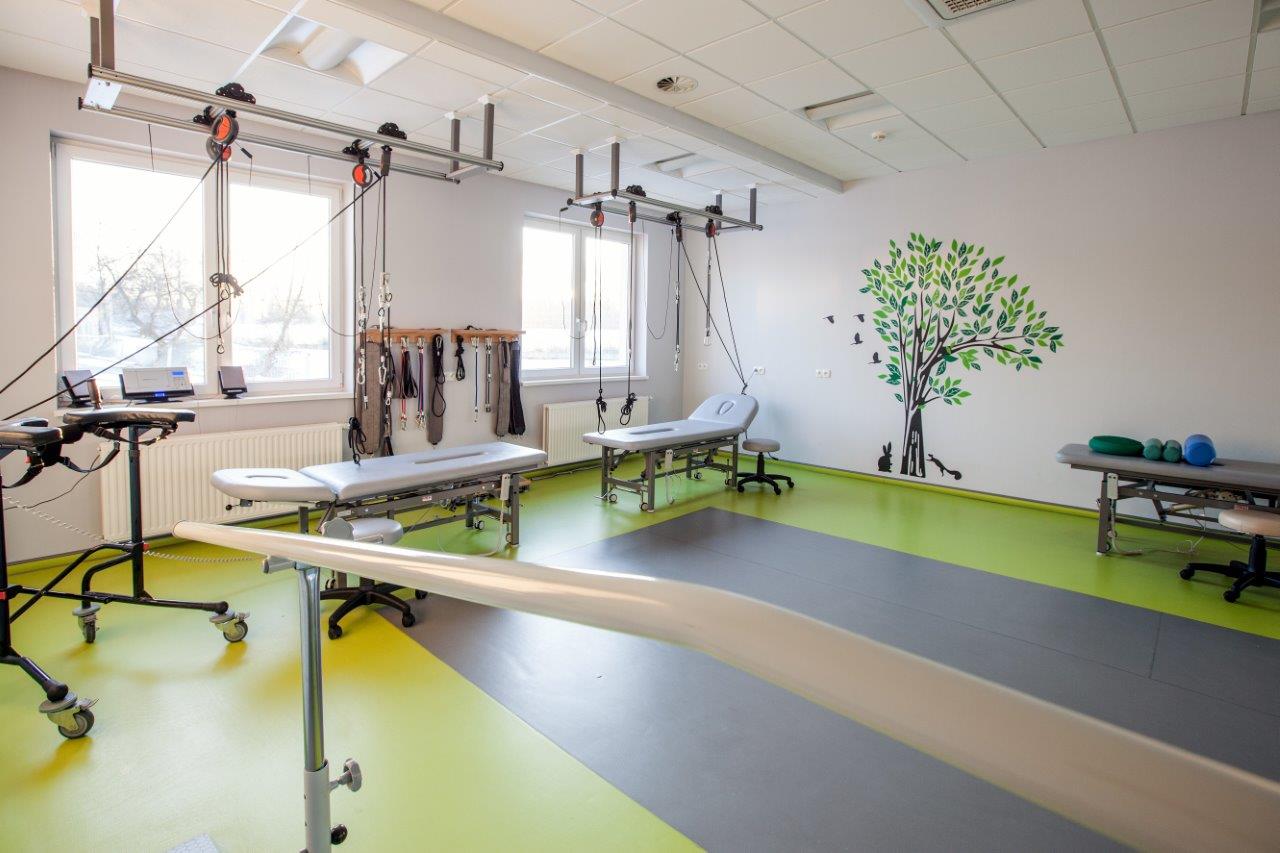 - Nowoczesna sala rehabilitacyjna, gdzie prowadzimy rehabilitację neurologiczną (np. po udarze), ortopedyczną (po wypadkach, urazach)