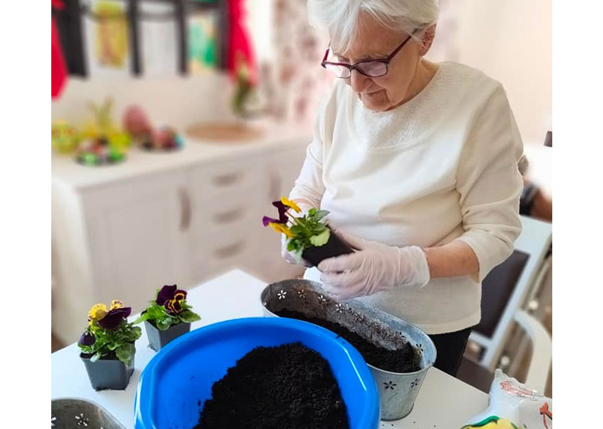 Wypełniamy dzień interesującymi aktywnościami, prowadzonymi przez terapeutę zajęciowego. Organizujemy liczne warsztaty, np. florystyczne, kulinarne, artystyczne oraz urodziny czy imieniny mieszkańców. Zapraszamy muzyków, organizujemy koncerty, śpiewamy. Zależy nam na aktywizacji mieszkańców, co sprzyja ich dobremu samopoczuciu i poprawia stopnień samodzielności. Jesteśmy dumni, że wielu z naszych podopiecznych – często ku zdziwieniu najbliższych – odzyskuje w naszym Domu radość i chęć do życia, a także odkrywa swoje pasje i talenty.